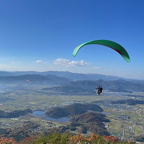 大学までの通学路にあったパラグライダーの体験場から飛び立った写真。